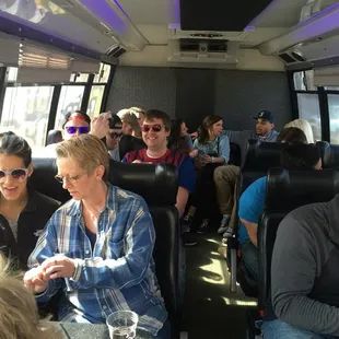 Great bus! Rosie is a fun driver. The seats are cushy and the AC keeps you cool between breweries. There's a big old U shaped couch at the back of our bus that seats up to 8 or 9. This bus seats 21 and I've seen bigger ones around town. Fun way to kick off a bachelor party and meet new people who also like beer!
