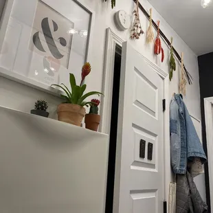 The hanging plant holder and the stain glass pieces!
