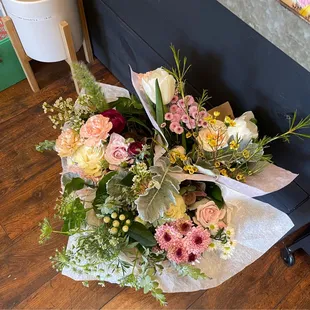 I've never seen a bouquet with eucalyptus in it! Very unique and pretty!