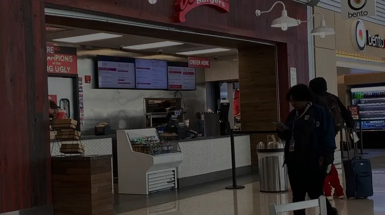 Nice to have a Bub's at the airport as a good option. I had about 20 minutes before my flight boarded. I wanted in line but there was a large group of customers waiting for their food so by the time I got to the front of the line I decided that I didn't have enough enough time to wait for food so I just ordered a fountain drink.There is a kiosk where you can order which has a separate line. It was a little confusing as both lines kind of merged together and some customers were trying to get to figure out which line they were in.The server wasn't friendly or helpful, but rather abrupt. I'd like to get food here when I have more time available. It looks like it takes awhile to get your food after placing your order.
