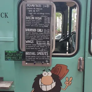 We were excited about trying the bacon hash at this food truck parked right outside of Flat12 Bierworks. We couldn't decide whether to get the 8 or 16 ounce. My friend asked for a taste. He quickly decided 8 ounce. I understood when we got it home, just a block and a half away. I tasted lots of curry and sweet potato, but no bacon at all. We both searched for any sign, but couldn't find any either. Also had a taste of the chili at the employees suggestion that we would be wild for it. I hesitated because the ingredients listed liver, not one of my favorites, but she said we wouldn't even taste it. I tasted it. If you like liver you may love it. I didn't. The caramelized brussel sprouts had a good flavor, but they were not very tender, picked too late it seems and sort of hard and chewy. Not a good night, but hopefully some better selections on another night.