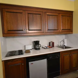 These suites are great. They have a comfortable home-like feel and are well maintained. The air conditioning works really well and there is a fridge, sink, coffee maker, and all the amenities. Sofa's have pull out beds. Would stay here again.