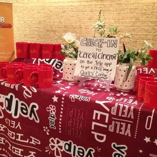 Cereal Cinema was great! Giant bean bags to relax in up front, great quality movie (even though the one we saw, The Land Before Time, was from 1988), and lots of cereal options, including gluten-free ones like Cheerios. There was also regular and almond milk, which was nice to see. We loved the free coffee and Yelp mug this time - such a great morning! These events also take place on Family Day at the IMA, so you can wander around and participate in the activities, such as food sampling, paper making and decorating pots which they provided dirt and seeds for. WE LOVE CEREAL CINEMA :)