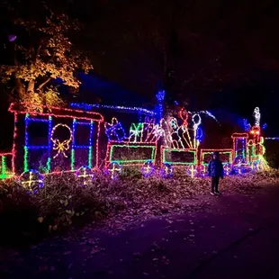 A beautifully lit up winter wonder land with the cutest animals. To experience this seasonal treat you must go at night. I must say it's different at night at the zoo but fun to see all of the lights-there's so many colors everywhere! They do have animal exhibits to see and some inside to get out of the cold. We happened to go on a calm winter day so it was very tolerable. I especially loved seeing the reindeer and their huge antler racks. One was even expecting a baby and the representative with them helped to answer our questions and we learned a lot. They only carry 1 calf at a time and it takes approx 210-240 days to birth one. They are born with velvet covered antlers that is eventually shed. Females are territorial and will fight for dominance and use their antlers. Antlers can be broken off and or shed which does not hurt them. Christmas at the zoo is a great experience I'd recommend. They even had penguins on display that some got the chance to interact with.