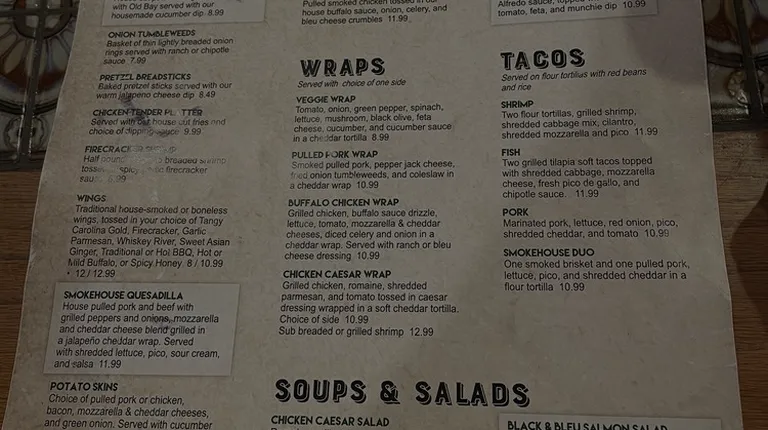 Our first visit to this local eatery was disappointing. We were seated promptly and drink orders taken and served. I ordered a brisket sandwich with a side of fries. The menu described this as smoked brisket. The meat was smothered with melted cheese and green peppers, adding very little in the way of flavor. The brisket (?) itself had no smoked flavor whatsoever; it seemed more like a piece of roast beef cooked in the oven. Barbeque sauce didn't even help add any flavor. The fries were soggy and pale, not hardly fried. My husband ordered the jambalaya which is one of his favorite dishes. The chicken and shrimp appeared to be cooked separately then placed atop rice and beans, way too spicy even for jambalaya, with some chopped tomatoes. (Note: jambalaya doesn't contain beans.) My husband ate the chicken and shrimp and left the rest. I make jambalaya at home from an authentic recipe - this didn't come close to any jambalaya we have ever had. Return to this place not likely.