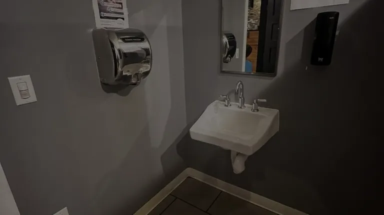 Bathroom sign and 21+ bar entry just past the (DILLY DILLY) sign