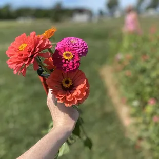 Dollie's Farm is a U-Pick family flower farm that offers fresh and locally grown flowers. Our first visit was a great experience and we are already planning another visit soon. We were greeted by two friendly ladies when we arrived and given a brief overview of how things worked. One of the ladies provided us with buckets that had water in them and a pair of shears. My wife and I enjoyed taking our time filling the buckets with a variety of flowers, including some of the most vibrant and fresh sunflowers I have ever seen. Once we finished selecting our flowers, we visited The Flower Shed and picked out a couple of glass vases. The owner was kind enough to arrange our bouquets in the vases and gave us some tips when putting together flower arrangements. She also added a variety of mint to enhance the amazing aroma and style of the bouquets. All-in-all, we were very pleased with our visit. The hospitality was great, the wide variety of flowers did not disappoint, and the overall experience was well worth the trip. Check Dollie's Farm out - I think you'll be pleasantly surprised!