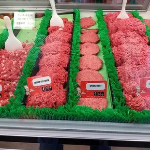 a display of raw meat