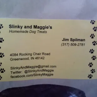 Slinky and Maggie's shop is in Greenwood. His doggie cookies are our dogs favorites. Catch him at a festival or in Greenwood.