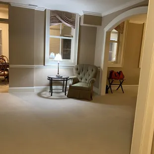 Entry room to suite. Bistro table, mini fridge, microwave and large closet