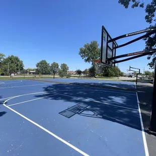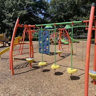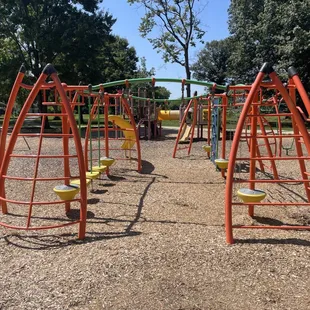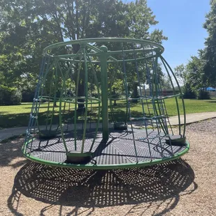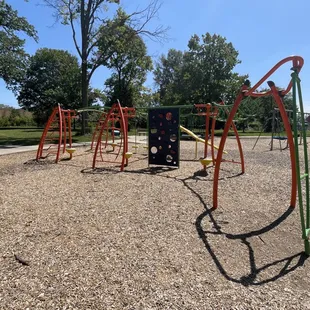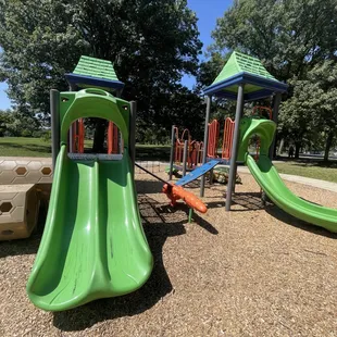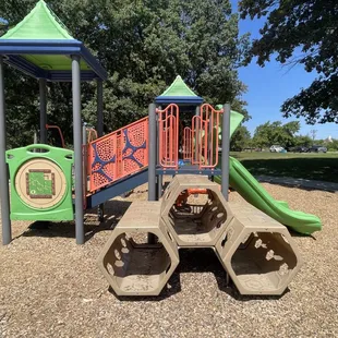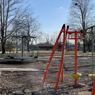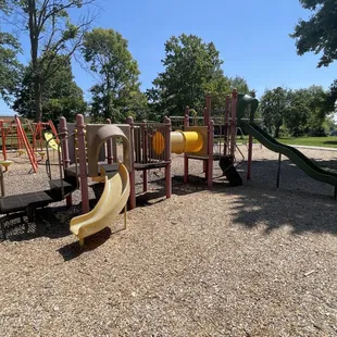 First time visiting this with my 3 and 4 year olds. Super clean park. One broken slide but it's closed off. It's in a quiet area and has a huge area to play or run in also. The basketball court seems good and kids were playing on it. My kids loves how different it is from other parks and how much things there were to climb and jump off of. Definitely a nice park and so close to where we live. The giant merry go round was also a huge hit.