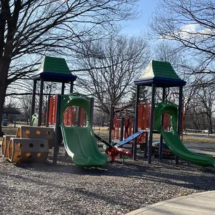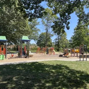 Fun playground. Lots of large trees with shade. Two picnic shelters, tennis and basketball courts.