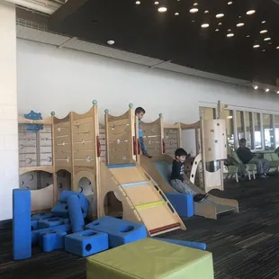 Wow! Amazing! Super fun! I am trying to think of as many superlatives as I can to express how awesome this indoor playground is. Fantastic! Wonderful for kids!I'll start this review by raving about the boring things. This place even gets the the boring things right. Things like including a nursing room (yay!). Or a designated eating area with a kitchenette, picnic benches, a refrigerator, microwave and sink (woohoo!). Or allowing open space to run and play, and not cramming too much into the space. And then there are the fun things. There is a huge climbing structure called a Luckey Climber. If you have seen the one at the Children's Museum, then you'll know the kind I am talking about. There is also a pretend grocery store and kitchen, an art center, a Lego center, a wooden playground for young kids, big foam blocks to build with, engineering and creation stations, an interactive video game, and a musical garden outside. So many things to do!Kid City is part of the Greenwood Community Center. It's $5 per child, which is a great deal. We took kids ranging in ages from 2 to 7, and they all had a great time.