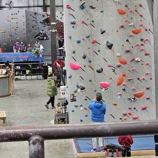 I took my 11 year old and her friend here on a whim. She's always loved rock climbing at the kid places (adrenaline, sky zone, etc) so I thought she'd love a step up to something more official. We paid $28 for both of them, super affordable. I was surprised how hands-off this place is. We watched an orientation video explaining how to put on the harnesses, how to belay, etc. and then off they went! We went midday on a weekday and there were several other people, but the place is so big they had tons of space to climb wherever they wanted. Lots of bouldering/free climb structures and several auto-belay areas to choose from. There's a wall for beginners or little kids, and there were several toddler/preschool aged kids there having fun! The place was clean, the staff was friendly and knowledgeable, and the bathrooms were well maintained. My girls had a blast and we can't wait to go back!