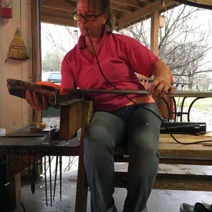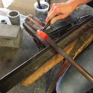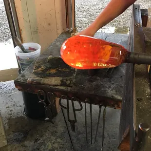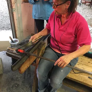 Rolling the hot glass on the table