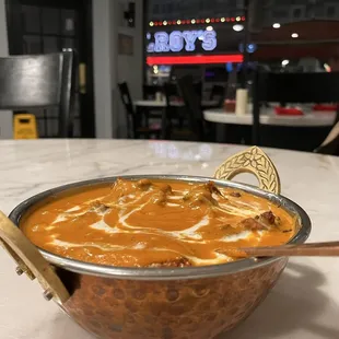 No spice very little chicken naan was like a flying saucer and no flavor - miss the old India Garden - it was our go but sadly no longer. Food was oddly sweet