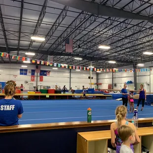 Never been here before but my bonus son had a 1 hr gymnastics session to go to. Not much to say. Seems like a typical gymnastics gym. They offered snacks for some change for parents. They had bleacher style seating with a few regular chairs. Mats to tumble on, high beams, foam pit, and trampolines.