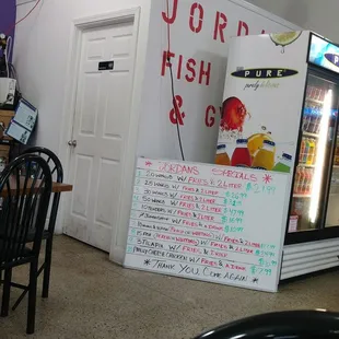 I passed by here a couple of months ago and since I'm always looking for seafood, I added them to my list. Today I was able to come in and try them out. I had studied their menu from my doctor's waiting room in Methodist just a couple of blocks away. I had narrowed down my choice to two options, fish or shrimp. I decided to order the 2 Catfish Fillets which includes fries and a can of pop from the lunch menu. The fillets are huge. They barely fit in the go box. The catfish tasted great! No issues whatsoever with the vegetable oil they were cooked in. The cornmeal breading was perfect. In my opinion, the catfish here is better than Caplinger's. The fries were fries. I'm not big on fries anymore unless they're crinkle style or steak fries. Jordan's has some seasoning on their battered fries. They were good enough for a side but my focus is always on the main entree and their catfish is the bomb. Highly recommended by moi. Restroom was out of order. There is a small free parking lot behind the building they share with a barbershop and a florist. I found multiple empty parking spots. Service was excellent all around. Dining room was mostly vacant at 1:30 pm on a Thursday. Bottom line is this was a good find.