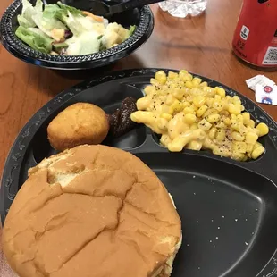 Jug's catered our event at work today. I didn't do the ordering or anything, just the eating. But it was pretty good! We had fried chicken, bbq sandwiches, salad, Mac and cheese, corn, and fried biscuits with apple butter. The guys pulled a truck up outside, cooked all the food, and set it up inside. Everything was set up well and very timely. Although I didn't have any, the fried chicken smelled great. The bbq was pretty good. The biscuit and apple butter was probably my favorite. All the sides we had were vegetarian so they were able to accommodate a variety of dietary options.