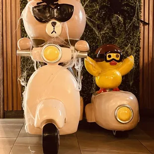 a teddy bear on a scooter