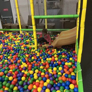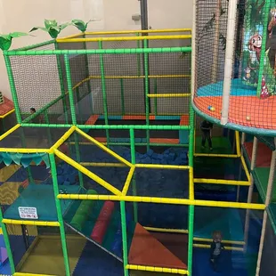 Kids planet is a great place to take kids to play. It's a giant warehouse space with plenty of room for the kids to play inside. There is a parents area to sit while your kids play or you can sit right by the play area to supervise younger kids. My kids both like coming here and they are 6 and 10. The do have a separate area for younger kids to play. They have some basic food items on the second floor. No outside food is allowed. I think they have pretty good pizza as I saw it being served for birthday parties. I got some cookies to eat. Also they do have free WiFi.In the play area I noticed lots of climbing areas ball pits, a shooting ball area, a jumping foam block pit too. Kids had a good time.