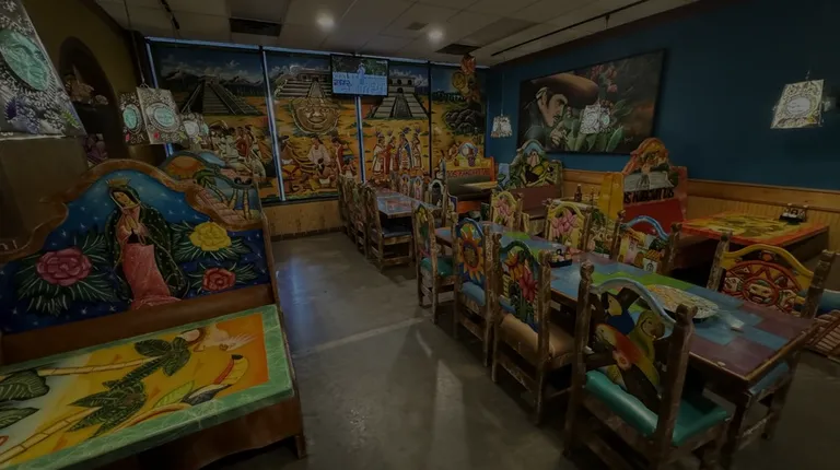 tables and chairs in a mexican restaurant