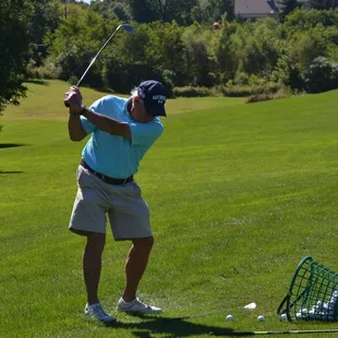 Nice course. $3 for 25 balls at the driving range is a bit stiff. Carts could use updating - no wind/rain screens and no GPS but handled well. 16 of us played in a scramble. Torrential rains compromised a couple of low lying fairways but the greens were good: fast with tricky slopes. Unfortunately we only played 7-9 holes before rains washed us out. We got 9 hole rain checks which never expire.