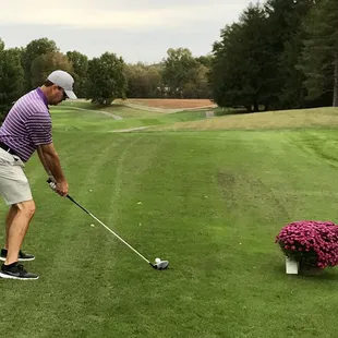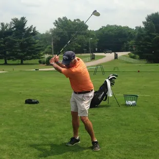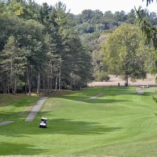 Great course! Only improvement I could recommend would be drink carts out on the course.