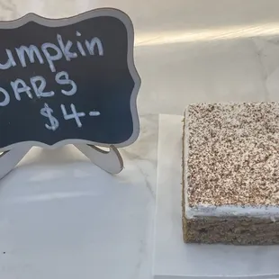 Pumpkin cream cheese bar - so good!! Light and fluffy