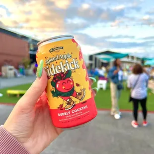 a person holding a can of soda