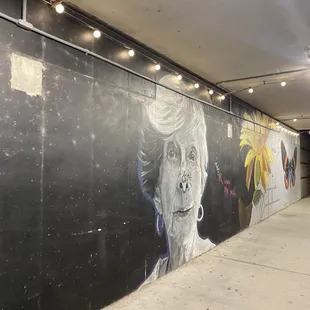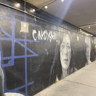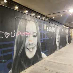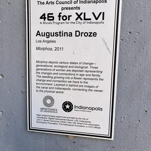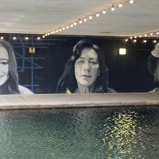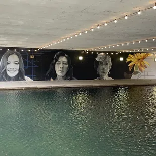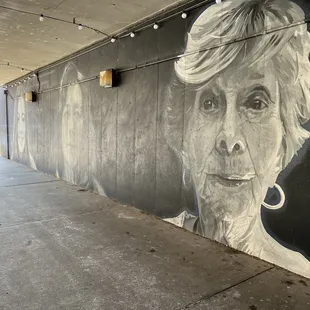 Morphis is a very detailed public art mural of 3 women located in downtown Indianapolis along the canal walk area. My family and I were in town for the weekend my daughter cheer Competition held inside the Convention center. Over the two days while waiting between performances and awards ceremonies me and sometimes my family walked the surrounding areas and explored as the public art scene here is plentiful and creative. One of the cooler places we discovered while exploring the area. The canal walk we noticed when checking out the 9/11 tribute. We went down a flight of stairs and while walking along the canal we noticed on the underpasses on each side was murals all the way down.This piece was the Ford one we noticed on our wall and rally stuck out among the other pieces as it was the only piece that had accurate portrayals or realism. I'm not familiar with any of the ladies in this mural but it is very nicely done.