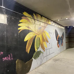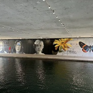 There's a nice big mural that is on the Riverwalk underneath a bypass next to the water. Unfortunately, some people have graffiti to over majority of it but the art in detail is still there and it is still a nice public art display.