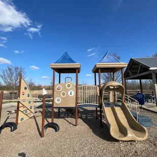 Splash pad, playground, pavilions, basketball court, trail, natural prairie, soccer fields, sledding hill, restrooms and more. What's not to love! This is a great little park nestled between the schools and neighborhoods in Zionsville. The grounds are immaculate and manicured. The playground has climbing structures, swings with mulch underneath. Some of the swings are designed for special needs. The playground requires adult supervision and there are many benches to sit and watch the kids. The splash pad was not operating during our visit but looks fun with themed sprayers. There is a little stomping creek adjacent to the splash pad. The restrooms were clean and unisex. On one side of the park is a prairie restoration project which is attracting many birds. We saw yellow finches during our visit. A trail crosses the park that connects to local trail system. There were lots of dog walkers and runners using the trail. There is limited parking on site but plenty of parking at the nearby middle school. The grounds are mostly accessible for special needs and strollers. We will be back.