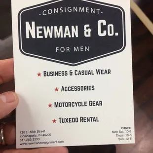 I feel no obligation to "check my privilege," or whatever other orders the younger, collectivist-minded generations want me to follow. Prior to this year, I'd never had a need or desire to buy second-hand clothing. I love the look and feeling of new clothing. Plus, wearing someone else's clothing gave me a grotesque feeling. I'm also the guy who's stupid enough to purchase new cars.My closest friend at work is a dapper man - a true dandy. I approached him one day and inquired into the fortune he must spend on his wardrobe. He quickly told me about Newman & Company, saying he hardly spent a dime on his clothing. Not long after, my father told me about a cashmere blazer he purchased second-hand. Where? Newman & Company, of course.Newman & Company is located in Broad Ripple, and it's a sizable store. Clothing is sold on a consignment basis, thus each piece is curated. The shop is very well organized, and they have just about everything a man would want: casual clothing, dress shirts and pants, suits, blazers, sweaters, and coats. They also carry a wide selection of ties, some shoes, and a few hats. Aside from clothing, motorcycle gear, jewelry, home decor, and other men's accoutrements are available. Newman & Company's entire inventory is listed on their website.I've been to the Newman & Company many times, and I've purchased multiple designer shirts, a Ralph Lauren blazer, and some Brooks Brothers and Polo pullovers. I'm more than impressed. Most of the pieces I've purchased have been very lightly worn - if at all. The clothes are all clean, wrinkle-free, and unstained. It's not like shopping at Goodwill. In these tough economic times, Newman & Company is a place where you can find country club clothing without the country club prices. Golf course not included.