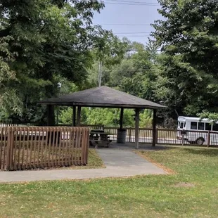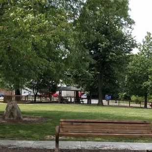 Doesn't look like much as you're driving by. But it's a great space for kids to play. There's outside playground equipment for all ages. There are bathrooms and drinking fountains on site. There's also a covered gazebo with picnic tables open to first come first serve. The parking lot small but this is a fun hidden gem.