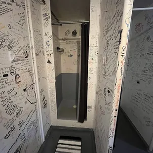 a hallway with graffiti