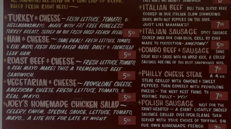Stopped by for the Italian beef sandwich, I would highly recommend it. Asked for it wet, will add to the flavor. Guy behind the counter recommended the cheese sticks, they are ok but the sandwich was great. I would definitely eat at the Original Joey"s Place again.