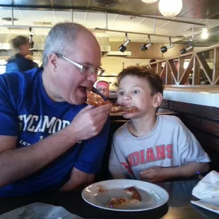 Little boy approves of the spaghetti! Mom and Dad approve of the pizza. Sausage is a must. :)