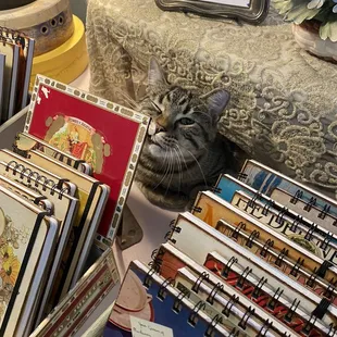 I do a lot of running around Indianapolis and much to my surprise I was watching Tik-Tok and saw this shop owner. I have been in this neighborhood numerous times and never saw this shop but after seeing the video I decided to go take a look! This is an adorable little shop and it has a shop cat! The cat's name is Scrapper.Talking with the owner she had some struggles during construction outside of the shop near Garfield Park and also during covid. She almost closed but she loves the shop so much she did not and we are the better for it.Plenty of vintage books in here with a lean toward women authors and Indiana history. She also has journals that she makes that have fabulous covers and in several different sizes.She also has some ephemera packages and I took a couple of those home as I do junk journaling. I will definitely stop back by here to support her small business and I suggest you stop by and take a look! If nothing else you can pet the cat he is very friendly.