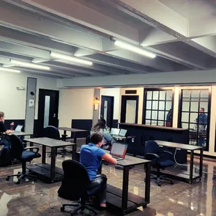 Revitalized industrial space on 46th street. The owners have invested heavily to provide a unique co-operative working space in the community. There is also an event space in the basement to accommodate large parties, access to internet, mail service and other amenities. Plus there is a taproom and Cuban restaurant on site!