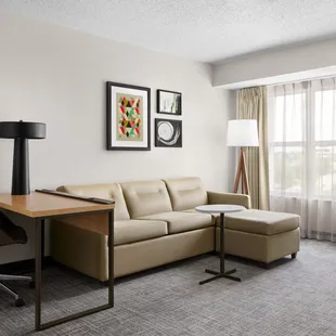 Pros: Room/Suite adequately sized. Decent coffee at buffet breakfast. Location convenient. Cons: Room and bed linens smelled like cigarette smoke. Water damage on ceiling. Floor and furniture surfaces dirty. HVAC loud. Lighting poor. Requested linens for pullout and received just one flat sheet and one blanket. Another blanket in room was wadded up on closet shelf. Was it clean? It was not folded. No tissues or extra toilet paper in room. Waited 15 minutes at 9pm for someone to return to front desk to ask for paper products. Seems like just one person at work in evening.