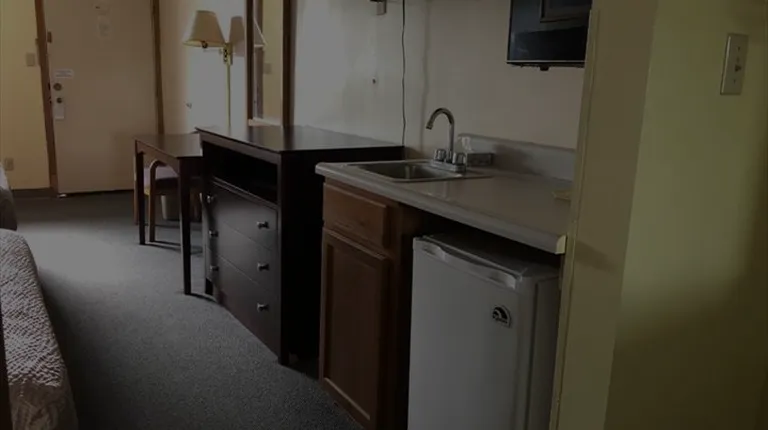 When e got there I as sooooooooooooo disappointed. The place looks like a old dump, but we were running late and I had the room booked already. OMG when we walked into the room, we were shocked!!!!! Absolutely horrible, indeed.The room smelled like urine, the carpet was nasty, the whole place looked uncleaned, the baseboards were detached from the walls, the fridge was nasty, and you could see the room above you through the floor in the bathroom. Do not stay there at all and it was a overpriced nightmare. The place stinks!!!!!