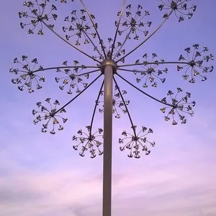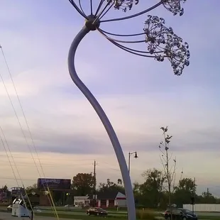 On the north end of the Main Street strip in Speedway, there is a pocket park that features this amazing art installation. Seeds of Light was made by artist Arlon Bayliss in 2016. Towering nearly 18', the structure has an organic look resembling a plant known as cow parsnip which is also planted in the park. The park is located on the Speedway Trailhead.The steel structure features LED's that light with various colors at dusk so that the blossoms light the night sky.This art installation has a related piece called "Beacon Bloom" in Carmel at the intersection of Westfield Blvd and 96th that was installed a year later.The installation was done in cooperation with the Arts Council of Indianapolis, Keep Indianapolis Beautiful, and the Town of Speedway.For more information about this and other public art, go to:https://www.indyartsguide.org/public-art/seeds-of-light/Review #1219