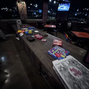 Nestled near downtown Indianapolis, right next to North Mass Boulder and just off the Mass Ave area, Shin Dig has quickly established itself as a standout dining destination. Despite being open for only a few months, it's clear they're hitting their stride--no surprise, given their ties to the seasoned Cunningham Restaurant Group.On a recent Tuesday night visit, the experience started on a high note. Fern warmly greeted us and immediately won points by offering my young dining companion a coloring page and crayons--a thoughtful touch that sets a family-friendly tone.The menu delivers everything you'd want for a casual yet elevated night out. I started with a glass of Chenin Blanc, which arrived promptly and perfectly chilled. From there, the breadsticks set the stage with their fresh-baked perfection, followed by a large vegetarian pizza that was flavorful, generously topped, and perfectly cooked. To cap it off, the churro dessert hit just the right level of sweet indulgence.Shin Dig's team is another reason to rave. Grace, our server, was attentive yet relaxed, striking a perfect balance. Jake, the manager, took service to the next level, ensuring every detail of our visit exceeded expectations.The atmosphere here is nothing short of stellar--beautifully designed, with a laid-back vibe that invites you to linger. However, I must mention one huge problem: the ugly coasters. Cunningham Restaurant Group really should rethink their design choices here. While it's a minor detail, it feels out of place given the eccentric vibe of this place. (I may be being dramatic here )That said, Shin Dig's combination of delicious pizza, wings, beer, and fun games might sound basic, but they execute it so well that it feels like a fresh take on an old favorite.In the words of Arnold Schwarzenegger: I'll be back.Highly recommended for anyone seeking a mix of great food, fun vibes, and exceptional service. Shin Dig is the kind of place that will keep you coming back for more--hopefully with better coasters next time!