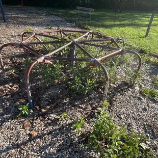 This is the definition of a traditional park. It is a small park with its own private parking lot. It has a medium sized shelter with picnic tables under it and a couple of grills next to it. The shelter has seen better days. There is also a field with a kickball backstop. The field does not have any markings, base lines, or mounds. It is just an open green space with a back drop. So, it can be used for other field activities such as soccer, football, frisbee, flying a kite, or playing catch. The playground equipment is in decent shape for the most part, but could probably use an upgrade soon. There is a set of monkey bars, a merry go round, a huge spiral slide tower, a metal slide, a bank of 3 see-saws, an expression swing, a hilly balance beam, a metal climbing pyramid, a bank of traditional swings, and a bank of toddler swings. Behind the swings are a couple of picnic tables and some benches. It looks like there is a merry go round that has been fully taken over by dirt and weeds and looks more like a gardenThe park has a full basketball court that is decent. The court is a good shape and the rims have nets. The court has benches along the side for resting or spectators. and there is a set of bleachers over there that it shares with the field.This park is alright. It is not like the new mega playgrounds, But it is one of the better ones in the area. I may not have the flash or pizzazz of the newer ones, but it can provide fun for a couple of hours.