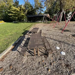 We love this little park tucked in where passerby barely know it's there. There are nice restrooms, but unfortunately they are locked today. The equipment is a nice mixture of new/updated and old school with traditional see-saws and a merry-go-round from the 1980's. There's a very nice basketball court and what looks like used to be a baseball diamond. There's a nice Pavillion for picnics and ample parking.