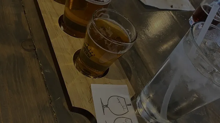 a flight of beers on a table
