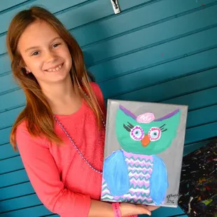 This was so much fun! I had always wanted to paint and this is exactly what I was looking for! I went by myself and there were only 3 of us that night so it was fabulous! We painted a "little blue bird" which was so cute and modern. I was nervous because I didn't want it to turn out awful since I really had no previous experience. She was so encouraging and did a great job explaining what to do! I am so proud of the final product and it will be hanging in my daughters room! Everyone was so impressed that I did it. It was amazing that we started with a blank canvas and 3 hours later we had a work of art! I will defiantly go do this again! Next time I will take a friend or my daughter, but I wouldn't be afraid to go solo either! Fun! You can go on the website and see what they will be painting that night. FYI - their studio is located across the street from the old Carmel Laundry Mat on Rangeline, just southwest of the big Carmel Arts District Arch.
