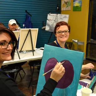We had a great class at the Paint Cellar! Highly recommend for a great night out with friends.We did a class where we painted our states. The states were pre sketched so it made it pretty easy. I certainly can't comment how it would be following along. However, there were a ton of paint color options and the instructor was super happy to give guidance or lay low and followed our lead which I appreciated.BYOB but bring your own cup!