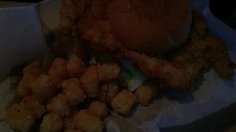 Thick, hand-breaded pork tenderloin and tater tots